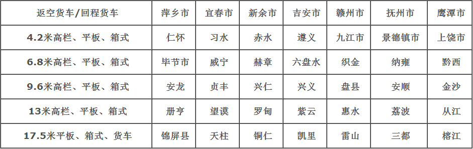 1、成都到湖南各地也有4.2米、5.2米、6.8米、9.6米、13米、17.5米返空貨車