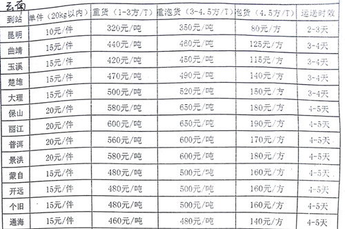 成都到開(kāi)遠(yuǎn)物流專線幾天到,運(yùn)費(fèi)怎么算?