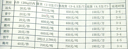 一體的現(xiàn)代化配貨站企業(yè)整車零擔(dān)、上門受理、合同承運(yùn)。代接代送、從門到門、天天發(fā)車、函電委托。運(yùn)價(jià)優(yōu)惠、安全快捷、信譽(yù)第一、客戶至上 .誠信服務(wù),承諾必達(dá)。全市價(jià)格好低,速度好快、專線直達(dá)、誠信到達(dá)。貨物全程跟蹤,天天發(fā)車,當(dāng)晚就走,汕頭物流專線公司您如果要找快的物流公司那還真是莫過成都元邦物流快運(yùn)!